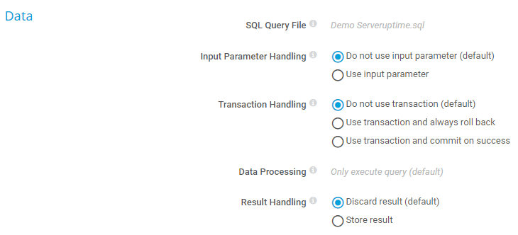 - Use input parameter: Execute an SQL query file that contains a variable. Provide the parameter that you want to use in the query below.