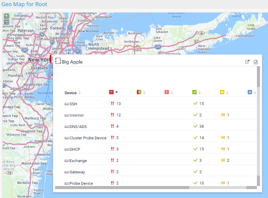 With the Geo Maps feature, you can visualize geographical information about monitored objects that are located at different sites worldwide on one page. You can display the location of probes, groups, and devices in a geographical map on the Overview tab of an object or in Maps.