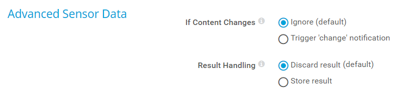 Discard result (default): Do not store the sensor result.