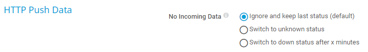 Enter a time threshold in minutes. If this time elapses, the sensor shows the Down status if it does not receive a push message within this time span. Enter an integer. The maximum threshold is 1440 minutes.
