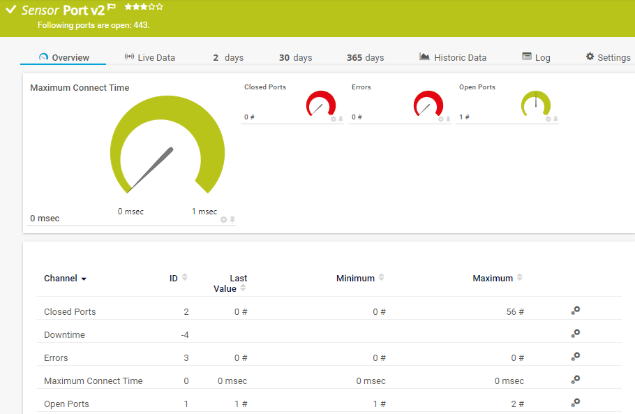 The Port v2 sensor monitors a network service by connecting to one or more of its TCP/IP ports.
